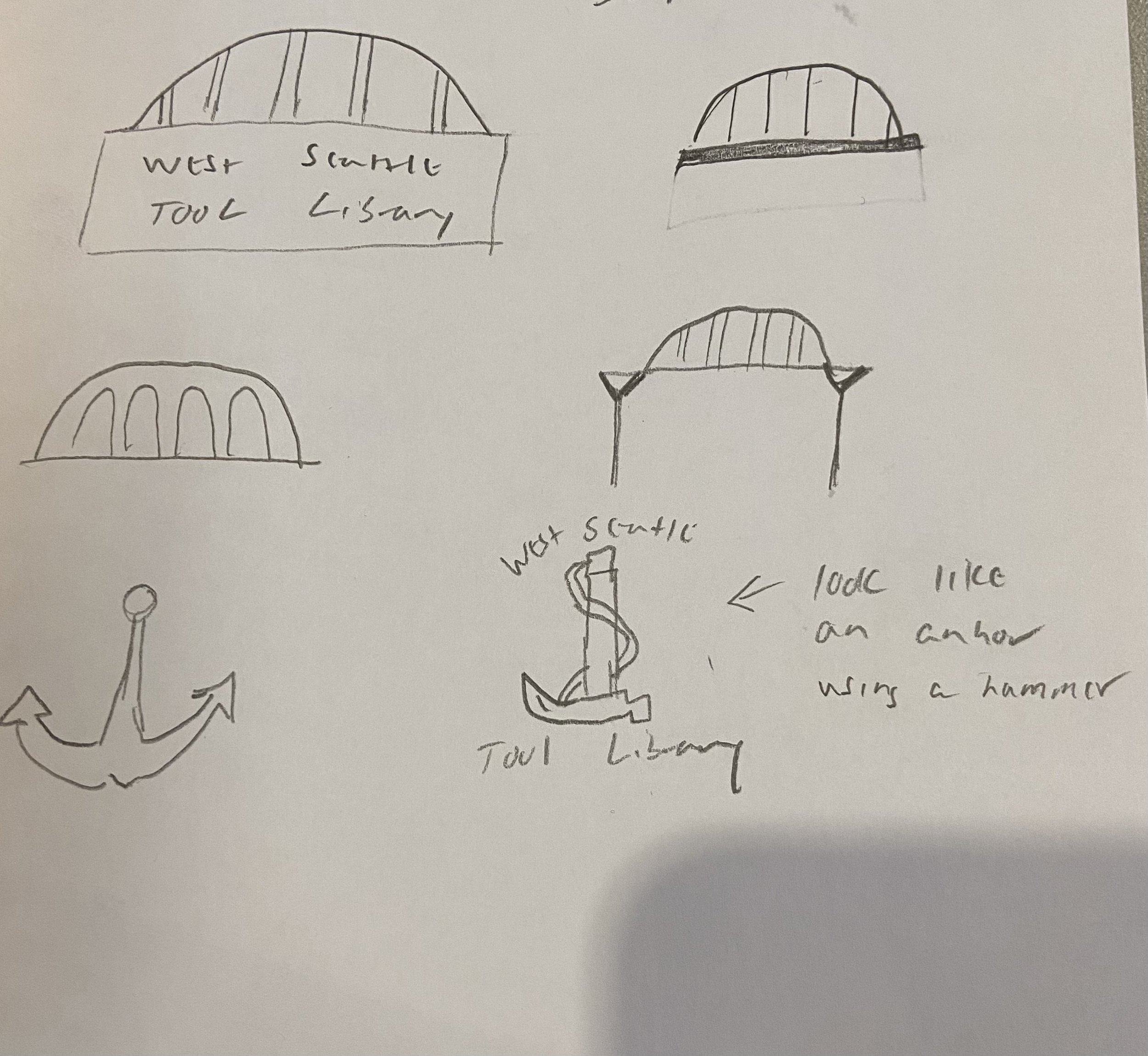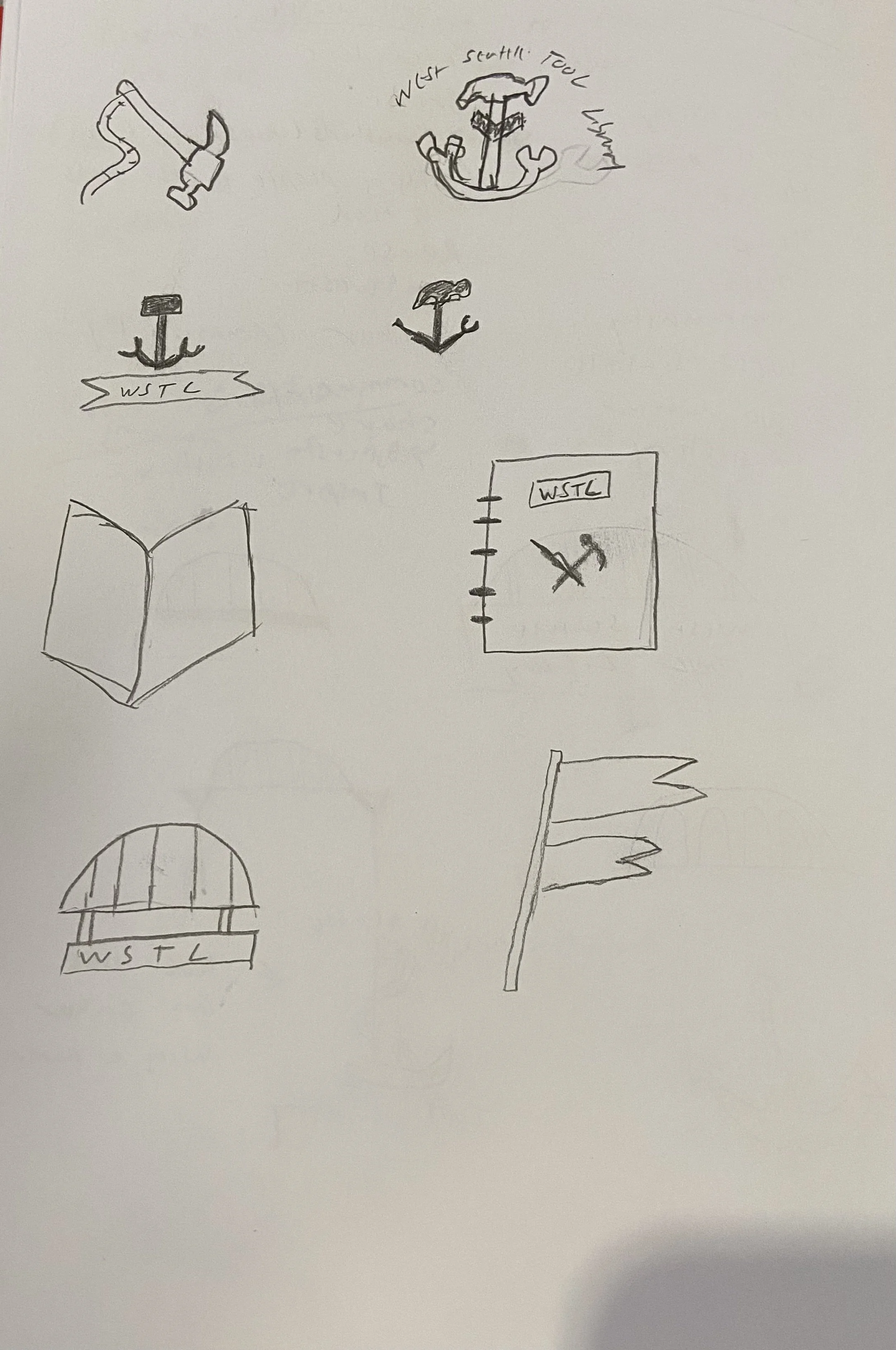 I wanted to include tools in my logo since tools are the foundation of WSTL. With West Seattle history I experimented with the idea of anchors and the west Seattle bridge. I also wanted to somehow include books to lend to the knowledge a library provides to a community